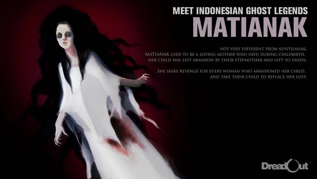 Konon dari cerita yang didapat, matianak hampir sama dengan kuntilanak. Berambut panjang, perempuan, dan ada yang bilang punya lubang juga di bagian belakangnya, Bedanya, matianak lebih suka menggoda pria.